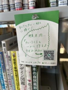 たとえば、このQRコードを読み込むと、カレーライスづくりに関連するオススメ本を紹介した記事が開きます。市民の方が作成したもので、記事の最後にズラリと並ぶ本の概要から各書籍の詳細情報へと飛ぶことができます。こんな感じで、一人ひとりの市民が自分の情報を発信できる仕掛けがコトノハなのです。