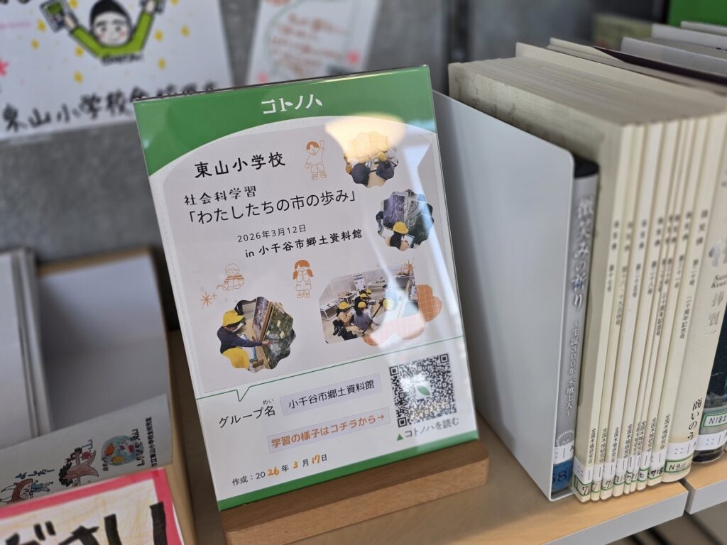 この個性的な複合文化施設の中でも、ひときわ異彩を放っているのが「コトノハ」というツールを使った独自の仕組みです。コトノハとは、本棚や展示室で使われているさまざまな形状のカード。POPのように掲出したり、しおりのように本に挟んだりと、館内のあちこちで見かけます。実物はこんな感じです。印刷されているQRコードを読み取ると、市民の皆さんが投稿した記事を読めるページにアクセスできるのですが、この投稿情報がなかなか充実しているのです。