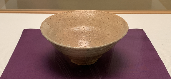 学芸員の解説によれば、もうひとつ、梅華皮(かいらぎ)も見どころとのこと。梅華皮とは釉薬が鮫肌状に縮れたもので、井戸茶碗では腰部や高台脇に見られるのが約束事のようになっていたそうです。写真では、肝心のその部分が陰になってしまっていますね。すみません…。